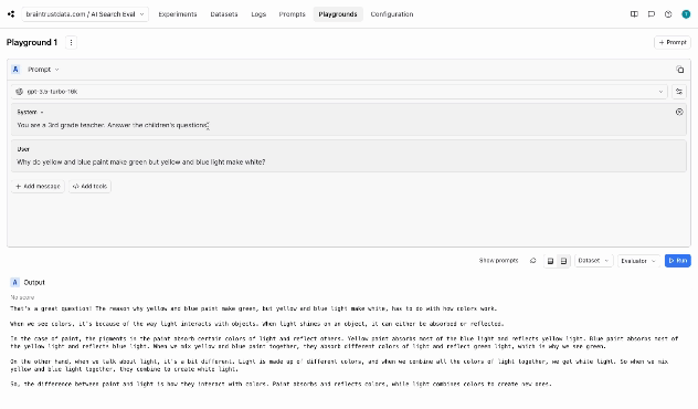 Screen grap of Braintrust playground